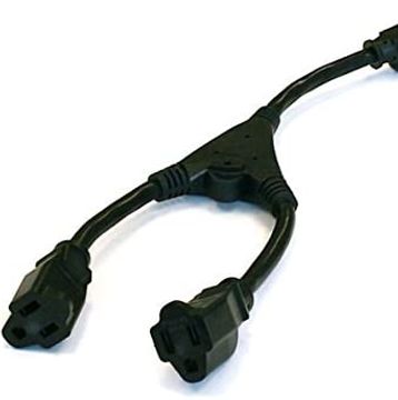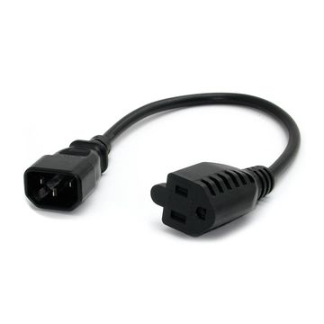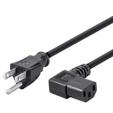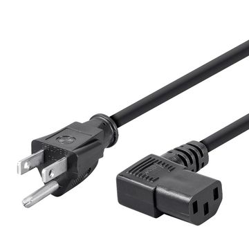 R/A AC plug on one end IEC female jack other end. 18AWG 12-ft Black